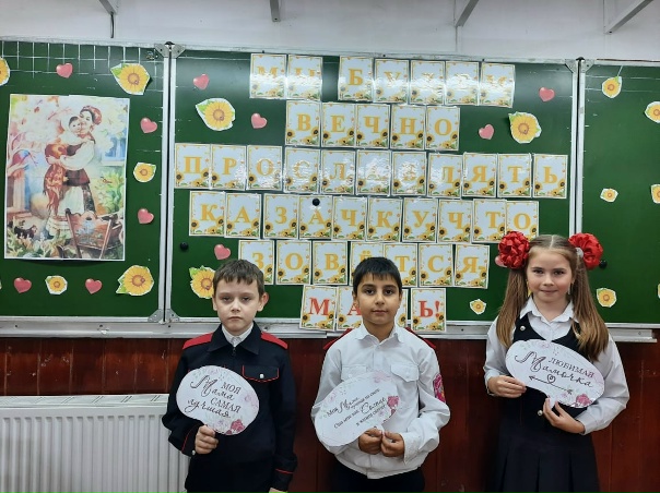 Также в школе № 3 им. Героя России Р.М. Хабибуллина города Кореновск казачата поздравили мам с праздником. Школьники нарисовали портреты и прочитали стихотворения на праздничном концерте для своих мам.