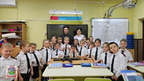 Наставник казачьих классов Береговского хуторского казачьего общества Геленджикского РКО Дарья Лесникова и заместитель атамана по культуре Владислав Карпенко провели в казачьих классах трех школ уроки, посвященные легендарному конструктору Михаилу Калашникову.