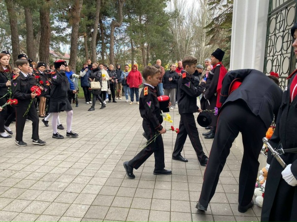 В день траура председатель Анапского отделения Союза казачьей молодежи Кубани Игорь Поляков совместно с учащимися казачьих классов школы № 16 имени И.В. Гудовича и школы № 35 имени А.Д. Безкровного, а также их родители возложили цветы к часовне Осиевского храма и помянули минутой молчания погибших от рук террористов в Крокус сити холле в Москве.