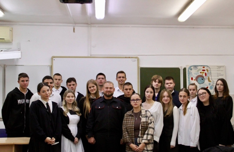 В Калининском районе в школе № 2 прошла встреча с лидером муниципального отделения Союза казачьей молодежи Кубани, участником кадрового проекта «Герои Кубани» Виталием Кулием.