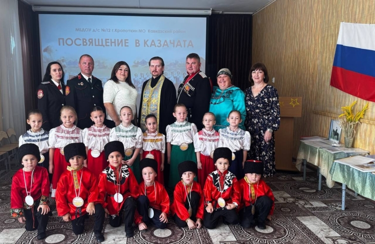 В детском саду № 12 Кавказского района состоялась торжественная церемония посвящения воспитанников в казачата.