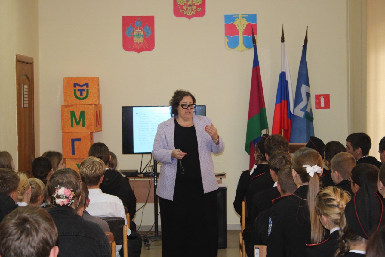 22 октября в Темрюкском филиале Московского государственного университета технологий и управления им. К.Г. Разумовского прошло обучающее занятие для 100 учеников казачьих классов из школ Темрюкского района: