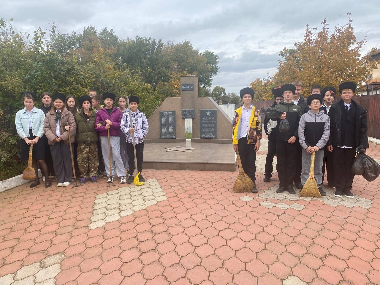 Ребята взяли шефство над мемориалом воинам, павшим в годы Великой Отечественной войны и привели в порядок территорию памятного места. Это уборка — проявление казачьего служения Отечеству и заботы о родной земле.