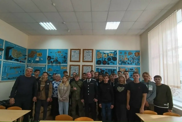 Литвинов Алексей Валерьевич, лидер Гулькевичского муниципалитета Союза казачьей молодежи Кубани, вместе с Алексеем Б., участником специальной военной операции, провели лекцию для студентов Успенского техникума механизации и профессиональных технологий.