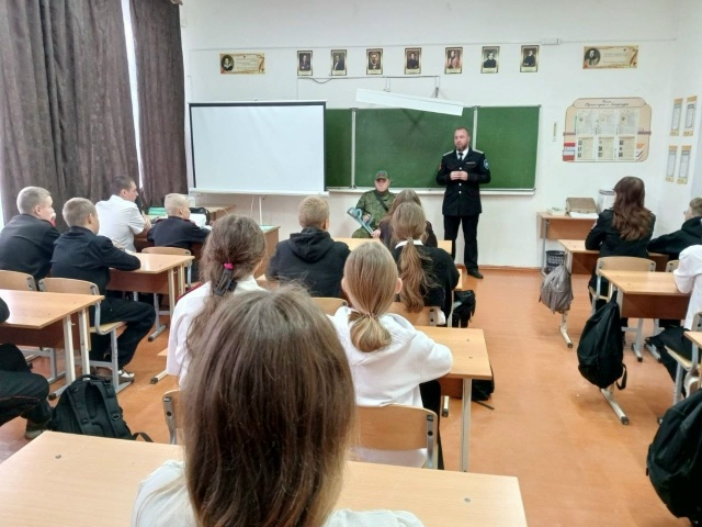 Учащиеся 8-9 классов встретились с участником специальной военной операции Боруновым Алексеем; беседа касалась тем мужества, долга и любви к Родине.
