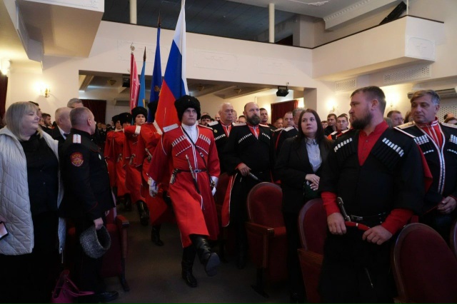 На мероприятии собрались около трехсот казаков, представители духовенства, пожилые казаки, атаманы первичных казачьих обществ, казаки-наставники, а также представители муниципального отделения Союза казачьей молодежи Кубани и руководители казачьих военно-патриотических клубов и учебных заведений.