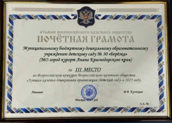 🏆 Казачий детский сад «Березка» муниципального образования город-курорт Анапа стал лауреатом Всероссийского конкурса «Лучшая казачья дошкольная организация» и занял почетное ...