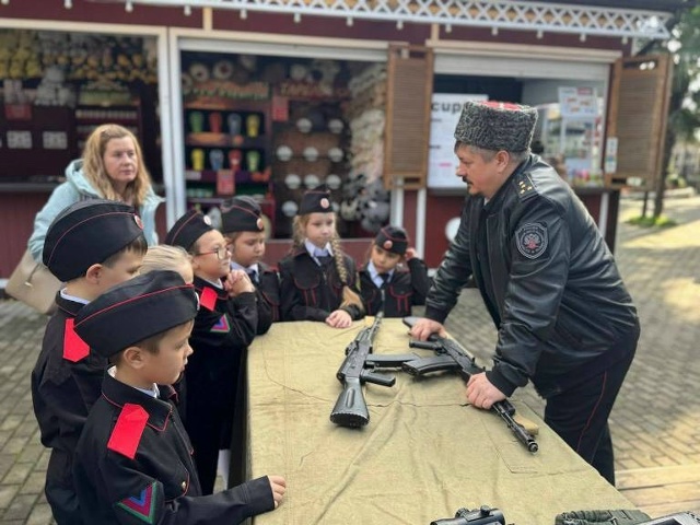 Атаман Центрального районного казачьего общества Сочи Алексей Моисеев предоставил молодым казакам информацию о современном стрелковом оружии, показал учебные образцы автомата Калашникова и обучил их быстрой разборке и сборке.