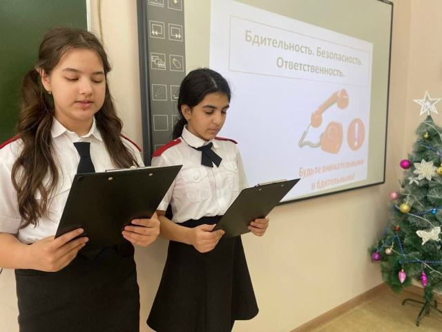 Активисты Тихорецкого отделения Союза казачьей молодежи Кубани, ученики СОШ №39 станицы Юго-Северной, провели Уроки мужества на тему «Бдительность. Безопасность. Ответственность».