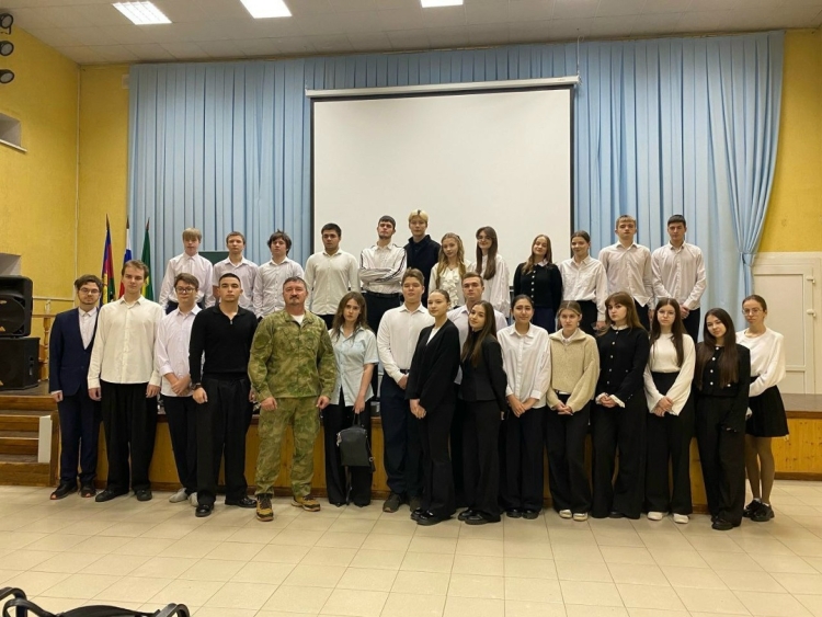 В рамках этого гранта была организована информационная встреча с учениками МБОУ СОШ № 38 города Абинска. Инструктор по боевой подготовке и тактической медицине, участник специальной военной операции и казак-наставник Олег Красильников представил информацию о деятельности военно-патриотического клуба и его целях.