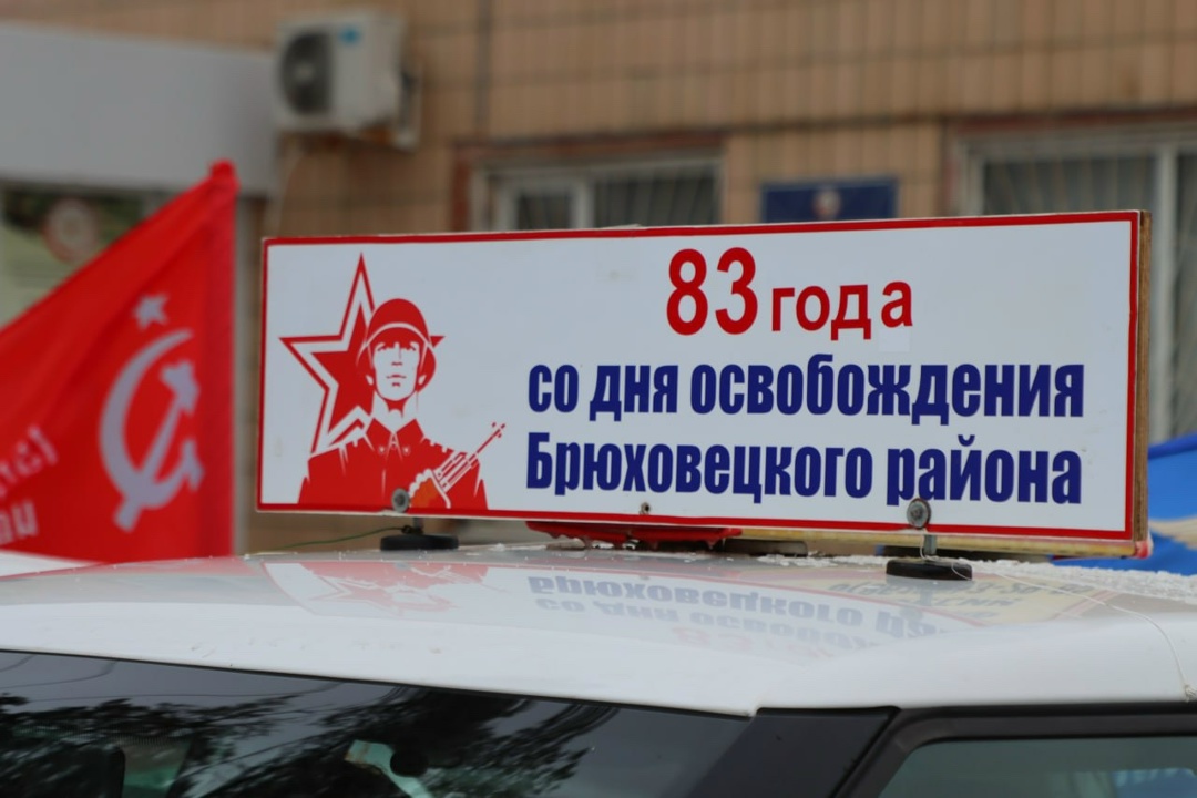 Колонна автомобилей местного отделения ДОСААФ России с символикой мероприятия, в сопровождении казаков-наставников и молодых членов казачьей смены, проследовала по памятным местам от станицы Брюховецкой до села Свободное, которое стало одним из первых освобождённых населённых пунктов в районе во время Великой Отечественной войны.