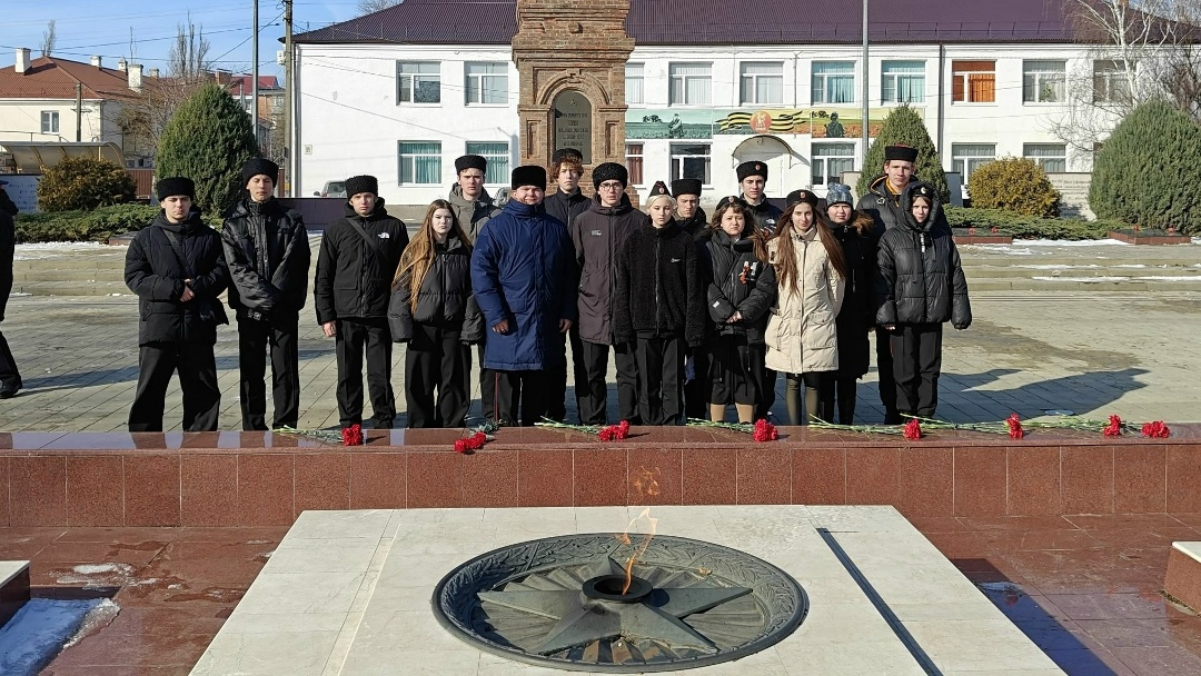 На мемориальном комплексе города Приморско-Ахтарска казачья молодежь приняла участие в возложении цветов к Вечному огню и обелискам, в память о тех, кто погиб при освобождении Приморско-Ахтарского района от немецко-фашистских захватчиков в годы Великой Отечественной войны.