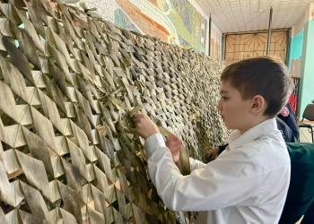 Казачата плетут маскировочные сети для наших бойцов